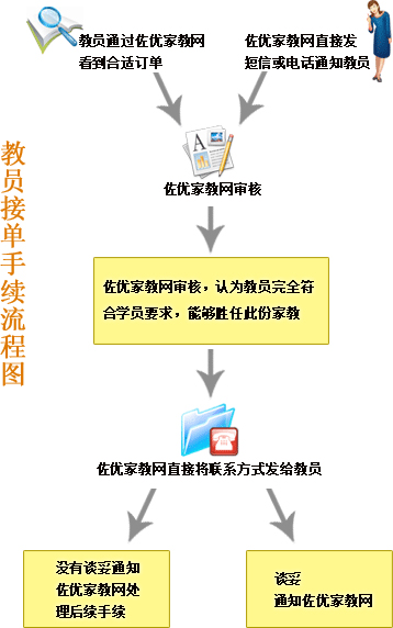 电话预约订单: 佐优家教网接到学员信息后,查看您的资料,觉得您有可能适合某个学员的条件,通过电话通知您预约订单。